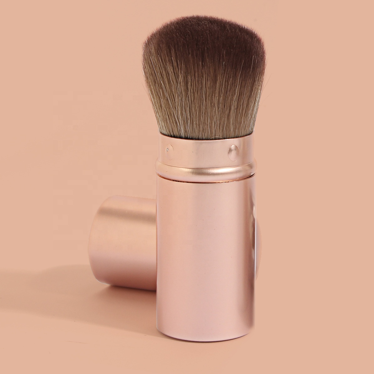 Private Label Custom Retractable Blush Brush Portable Travel Rose Gold Retractable Make Up Brush Beauty Tools